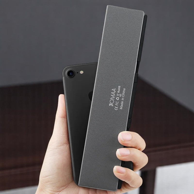 Prop up your phone or tablet effortlessly! 🎥📚 FlexKey Mini® comes with a smart fold-out stand, turning any spot into your mobile office or movie zone.